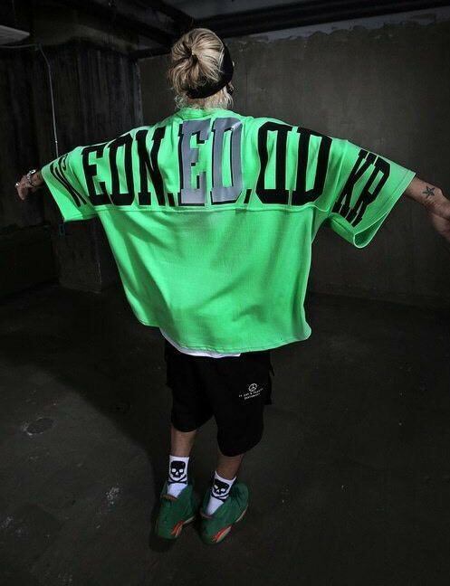 ビーロマンス オーバーサイズ リフレクター デカロゴ Tシャツ 【グリーン/緑】