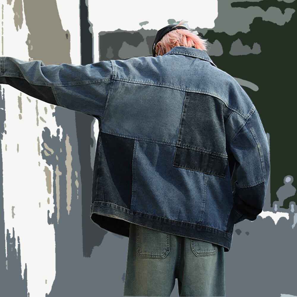 ビーロマンス オーバーサイズ パッチワーク風 デニム切替 ジャケット ジージャン